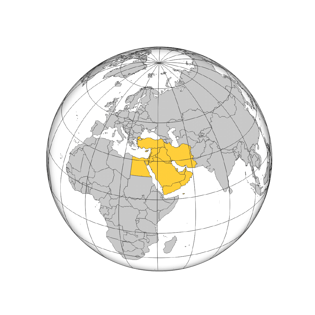 De kaart bevat alle landen van het Midden-Oosten, waaronder: Turkije, Iran, Saoedi-Arabië, Israël en Egypte als de grootste en meest invloedrijke landen. Daarnaast zijn ook andere landen opgenomen, zoals Irak, Syrië, Jordanië, Libanon, Koeweit, Qatar, Bahrein, de Verenigde Arabische Emiraten (VAE), Oman en Jemen.